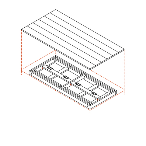 La instalación se configura como un entramado que encierra un volumen, extendiendo un brazo para invitar al visitante a vivir la experiencia del cuadro. El volumen sólido se constrasta con el tejido desnudo de madera que lo sostiene, jugando con el espacio que lo rodea y permitiendo la exploración.